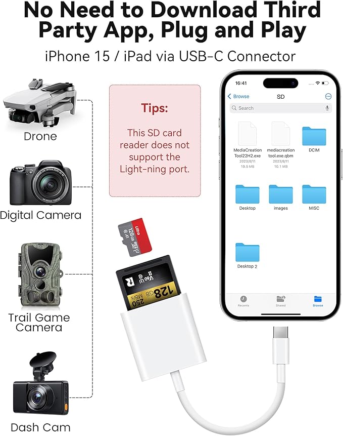 Thanks to an Apple MFi‑approved controller, data moves quickly and securely. Transfer rates on the Lightning connector range from roughly 12 MB/s to 16 MB/s, and the USB‑C side achieves around 10 MB/s to 16 MB/s, giving it an edge over generic readers without compromising file integrity.
